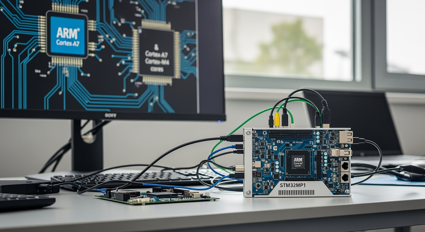 Seria STM32MP1 stanowi zaawansowane rozwiązanie dla systemów wbudowanych, oferując szerokie spektrum funkcji[1]. Mikrokontrolery z tej linii wyposażono w rdzenie Cortex-A7 oraz Cortex-M4, co zapewnia im wysoką wydajność przy jednoczesnym zachowaniu efektywności energetycznej. Dzięki temu doskonale sprawdzają się w aplikacjach przemysłowych oraz w obszarze IoT.